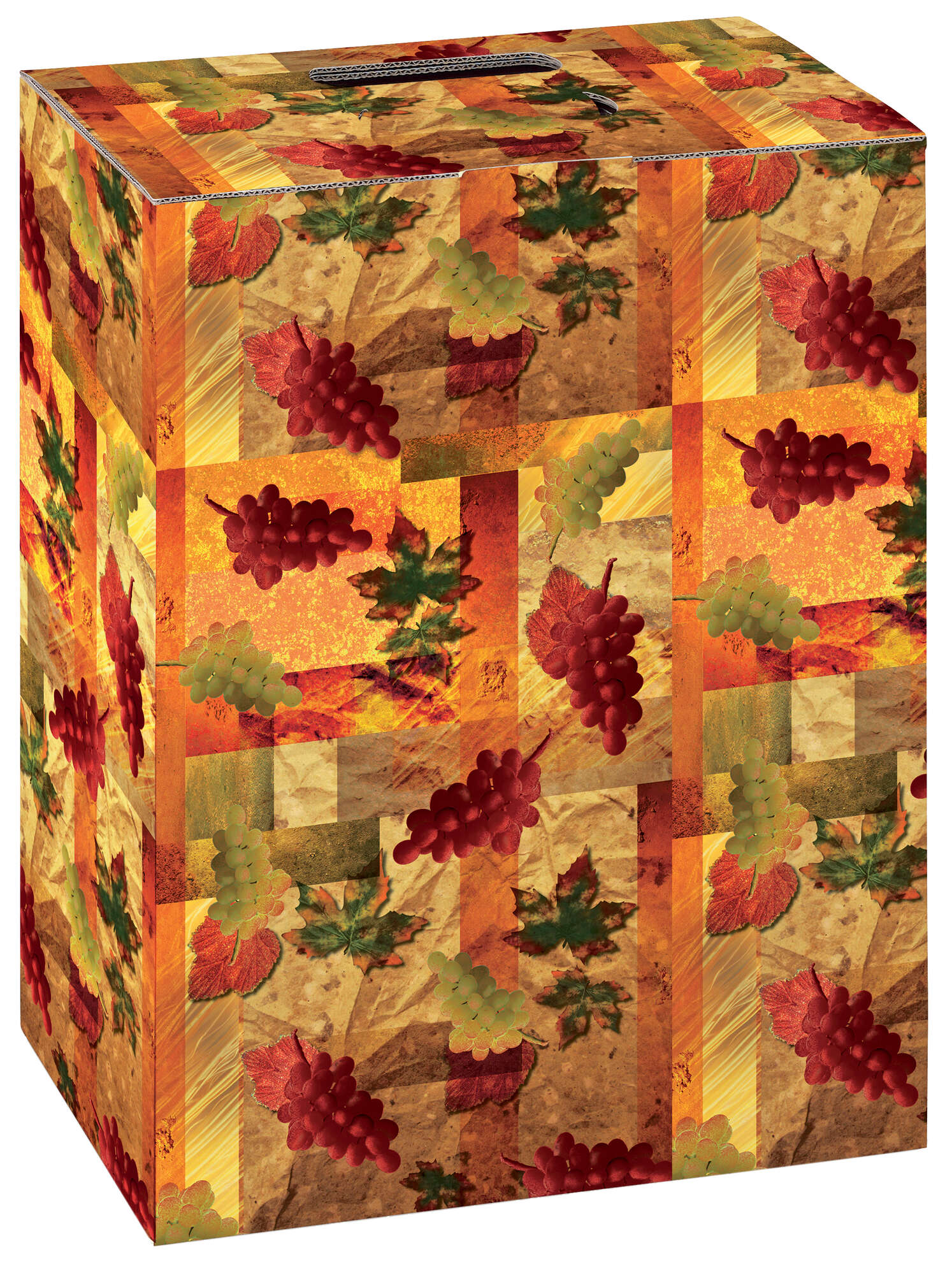 Embalaje de cartón para botellas decorados con motivos de vides y racimos de uvas