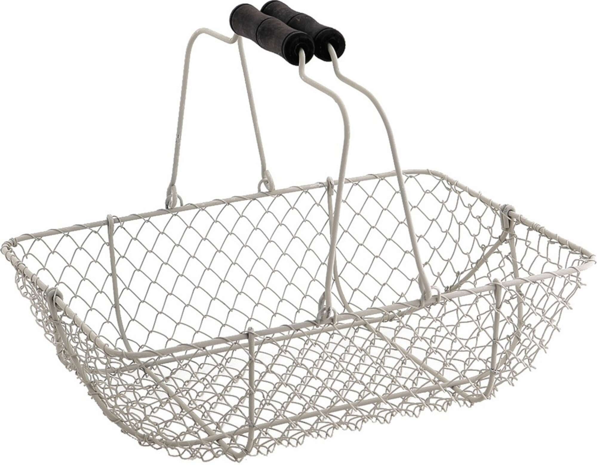 Cesta de malla de alambre. Las asas se pliegan hacia los lados.