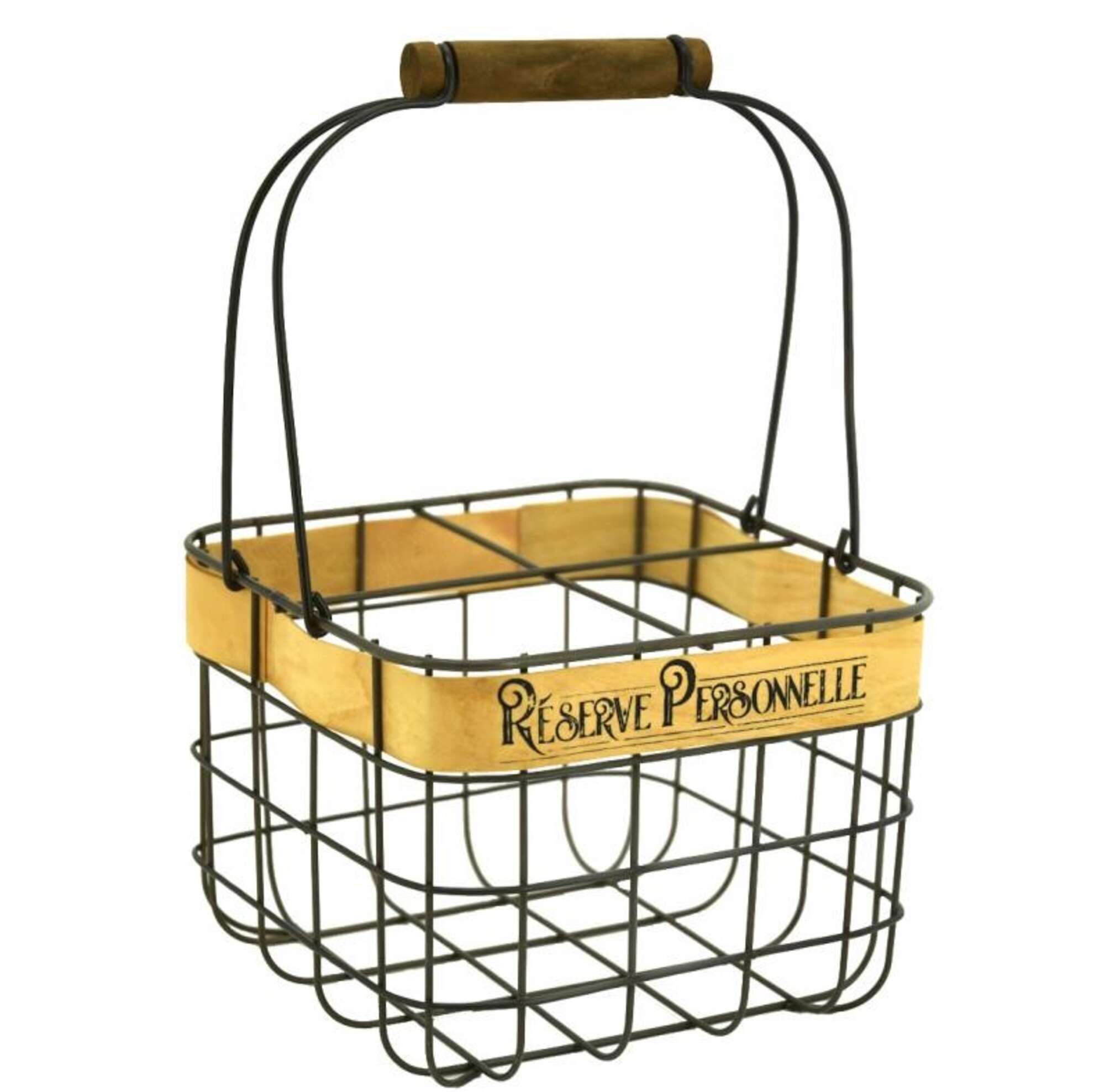 Portabotellas de metal revestido de madera con impresión "Réserve personnelle".
