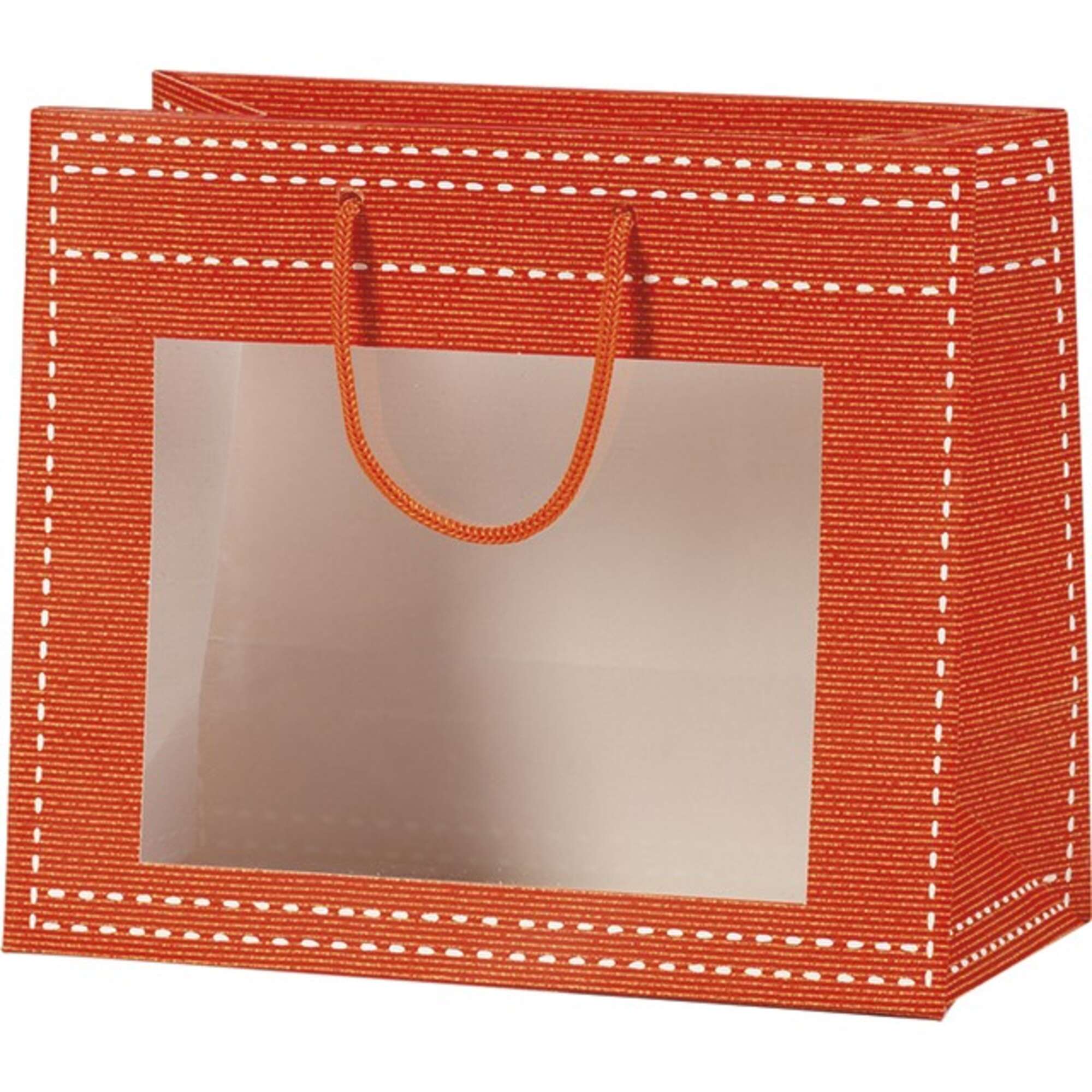 | BD-SB010PO | Bolsa papel naranja ventana PVC 20 x 10 x 17 cm | Naranja |